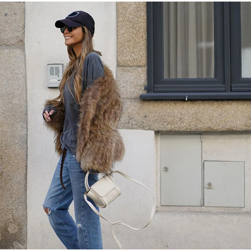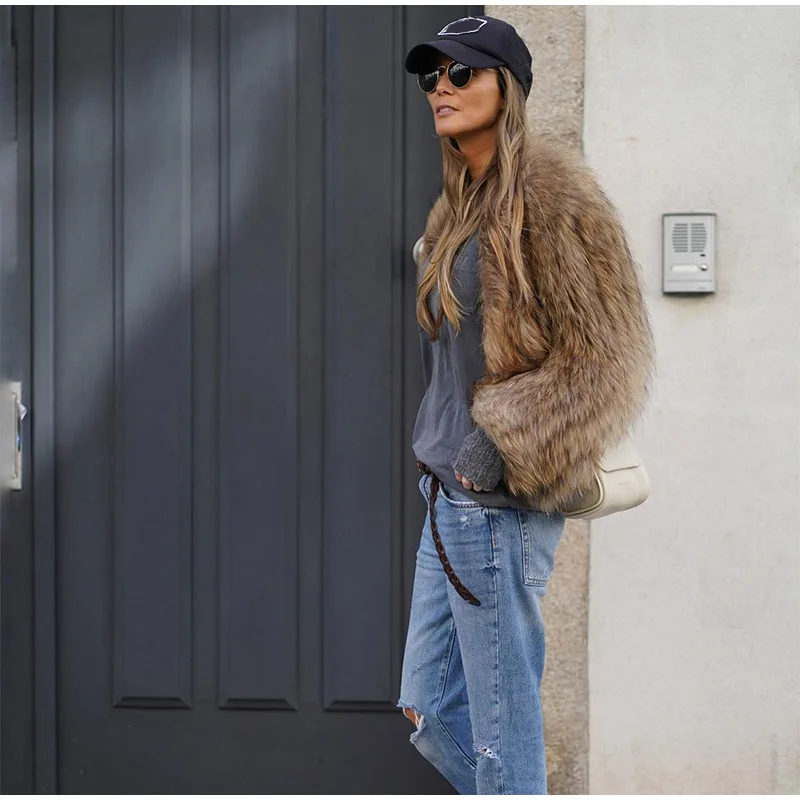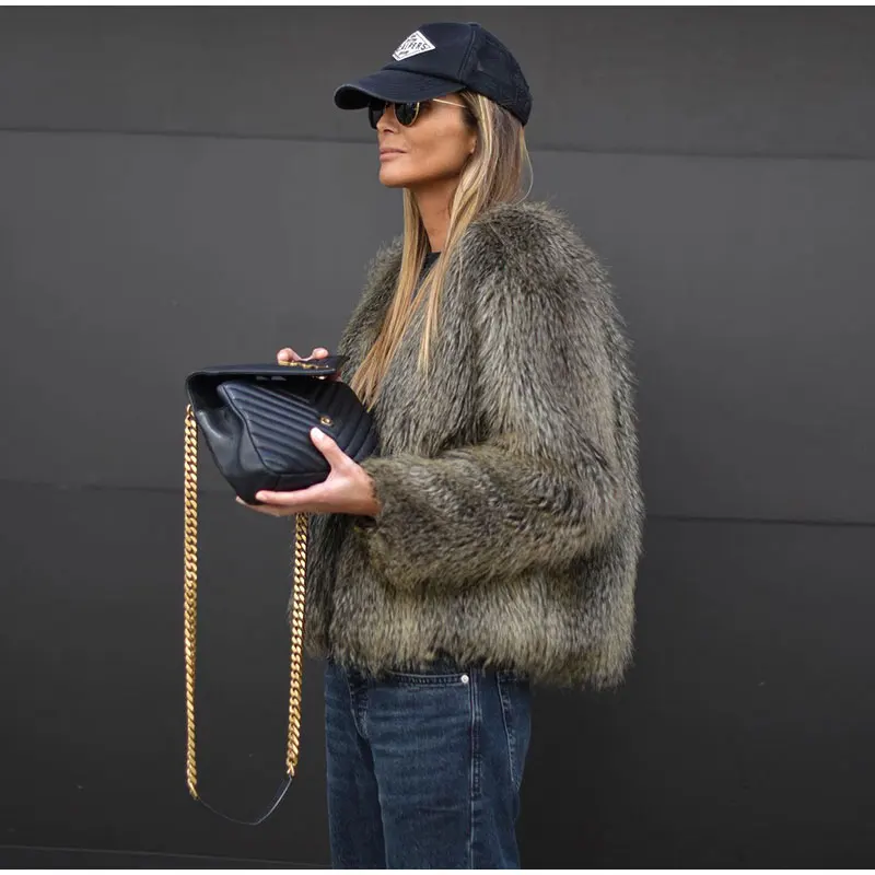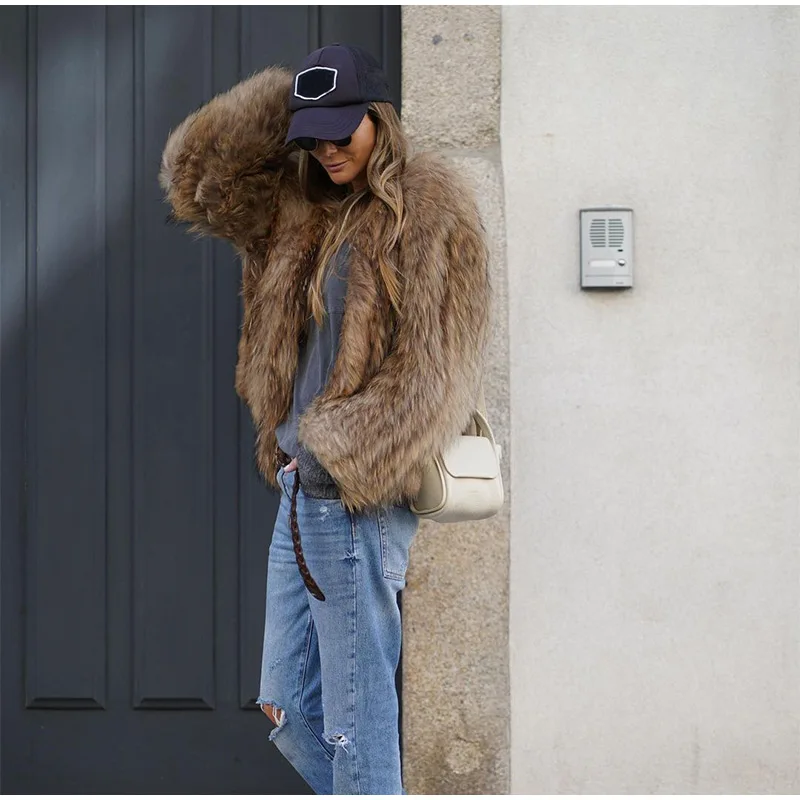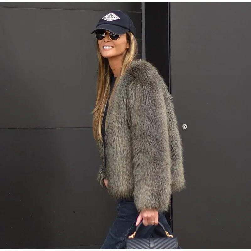 TAVIMART Fashion Thicken Short Faux Fur Jacket For Women Chic V Neck Long Sleeved Plush Cardigan Winter Female Elegant Warm Coat