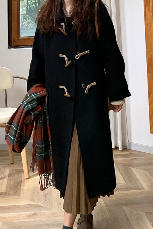Petite Red Thickened Wool Horn Button Christmas Outerwear